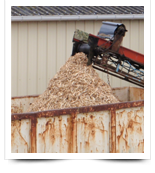 Notre broyeur nous permet de valoriser les parties non-conformes et les déchets de bois sous forme de plaquette pour une utilisation ultérieure comme l'alimentation de chaudières, la fabrication de panneaux de particules ou de pate à papier etc...